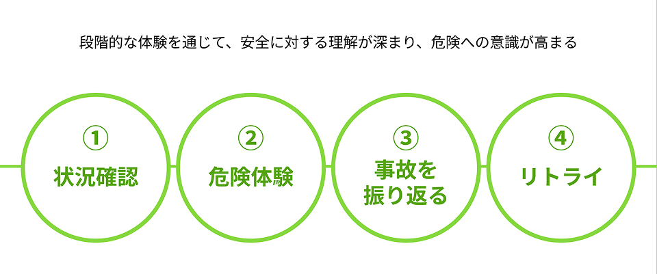 • 現場で想定される事故やヒヤリハットを、リアルに体験させたい